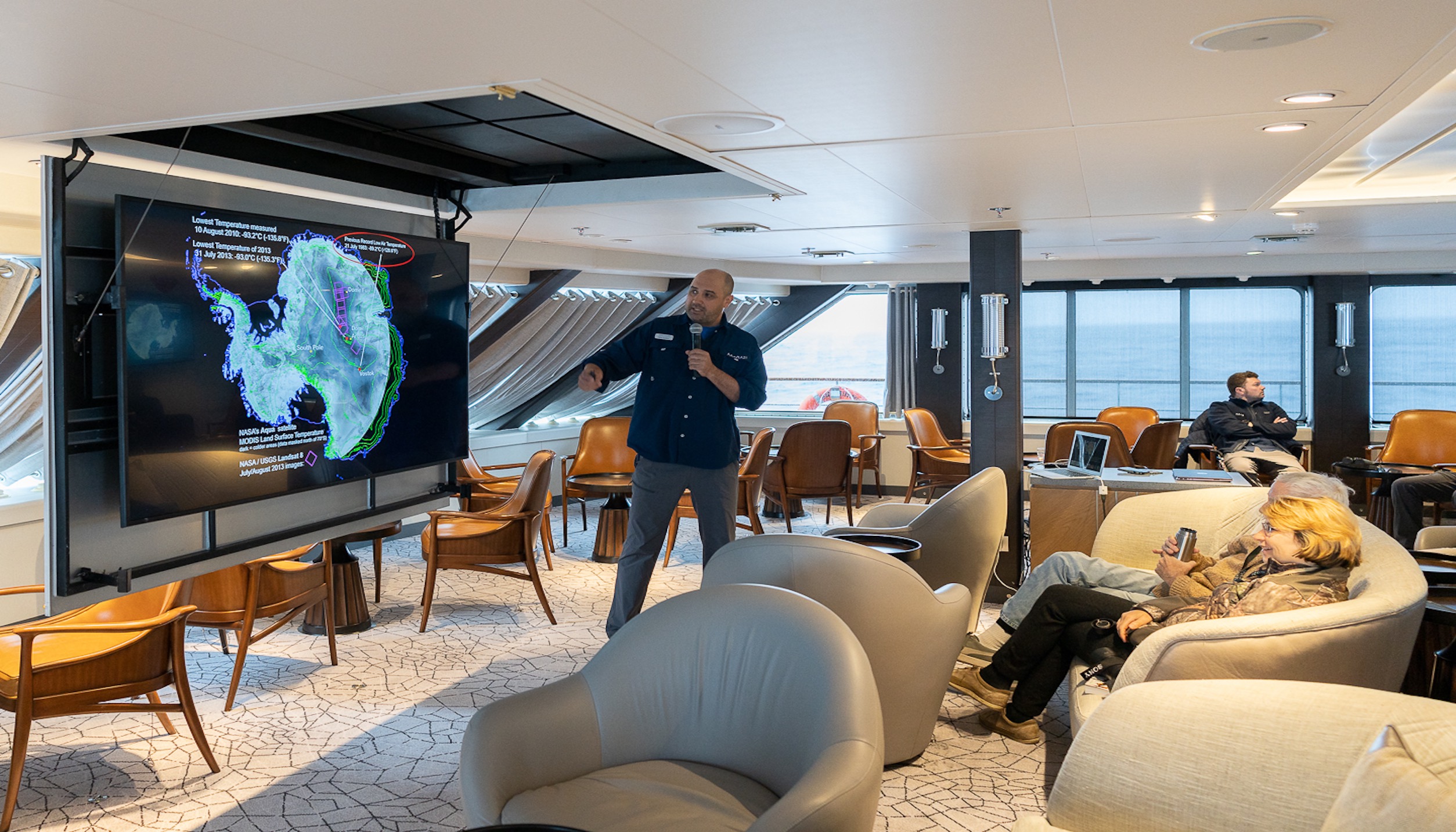 With its revolutionary X bow design maximising stability and environmental responsibility, the Greg Mortimer offers the perfect base camp for adventures at the outer limits of human exploration.